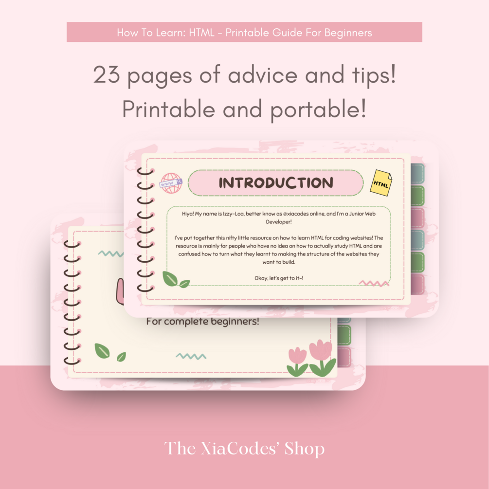 The XiaCodes' Shop offer printable resources that seamlessly blend functionality with beautiful design. My "How To Learn: HTML" Printable Guide is a testament to our commitment to providing you with the best tools to excel in your coding endeavors.
